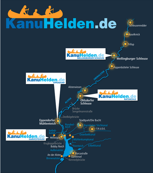 Starte deine Tour an unseren zwei eigenen Kanustationen an der Alster.